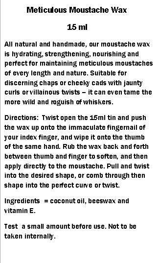 Meticulous Moustache Wax July 13, 2014samcrowart Leave a comment check it out in our shop … http://www.theaudaciousbeardco.yokaboo.com/ Share this: Click to share on X (Opens in new window) X Click to share on Facebook (Opens in new window) Facebook Like Loading...