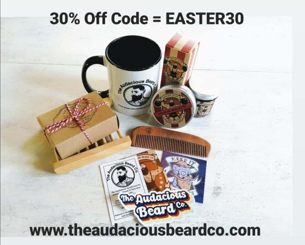 Happy Easter! Because we miss the days when every Easter egg seemed to arrive tucked up in a mug – we’re giving away all these Audacious Beard Co goodies, including the mug!!!