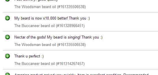 Just a thank you for the speedy delivery and quality of your products, been using them a few weeks now and my beard is free of split ends and tangles, and is almost as soft as it smells good grin emoticon